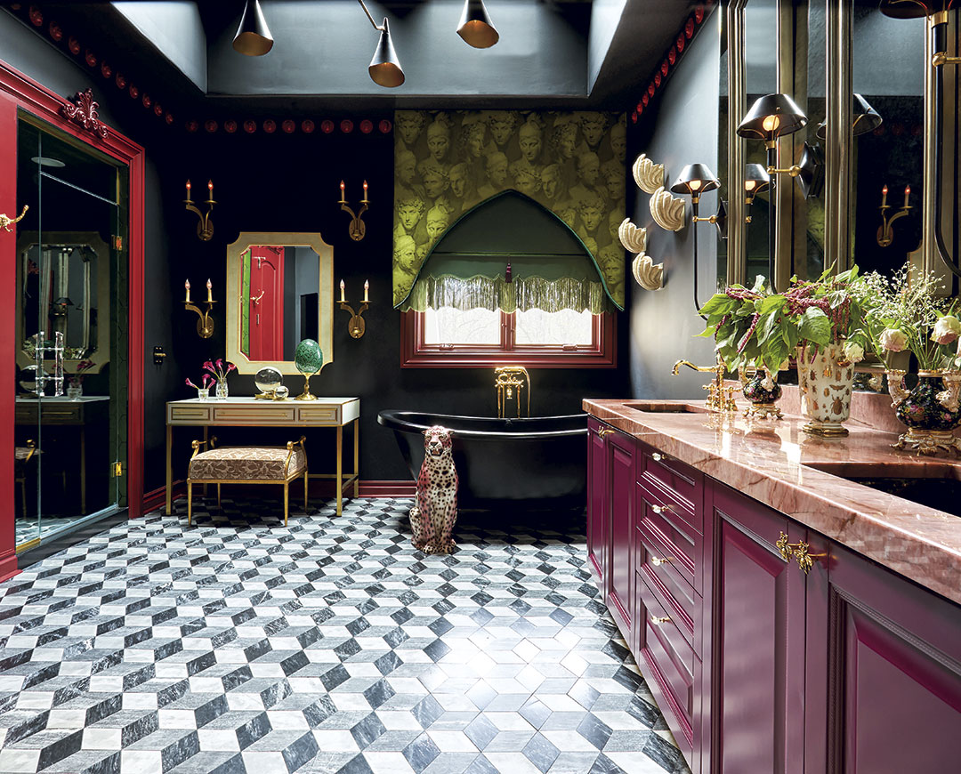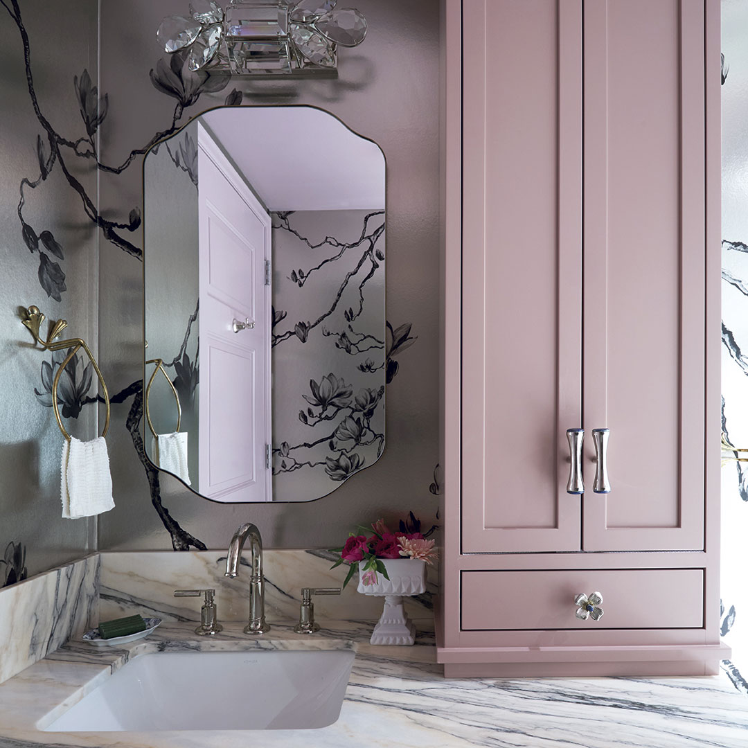 Reese notes that she enjoys using richer colors in these hardworking spaces because “it instantly makes them feel designed rather than purely utilitarian. Then I balance them with beautiful stone, mixed metals and different lighting so the room feels layered.”