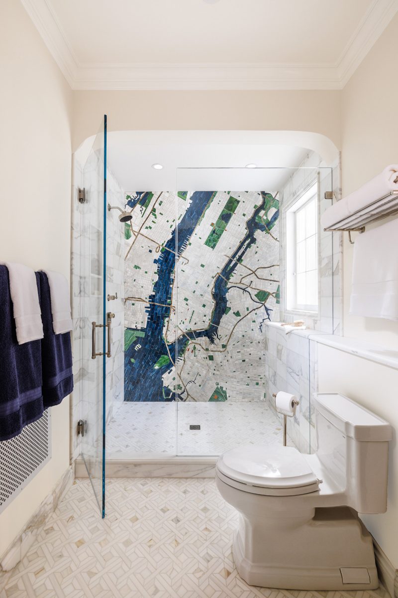 Denver-based interior designer Jenn Medoff also features original artwork as one of her goodies – in her case, using custom glass tile mosaics. “For clients wanting texture, bling and a visual punch, glass mosaics are a go-to recommendation,” she stresses. They can show up in different rooms, but she often chooses them for shower feature walls. “I find that tight spaces present a unique opportunity to incorporate playful, wow moments and I love the drama, whimsy and reflective quality that glass brings.” Her tile artist is Brooklyn-based Allison Eden Studios. “Allison’s patterns and color combinations are endless, so I find that any tone can be set – from glam to playful to refined.” Like any custom detail, she notes, these mosaics do add time and thought to a project, but they also elevate the space and contribute to client satisfaction. “This intangible is the special sauce I always seek to incorporate into the homes I design,” Medoff shares.