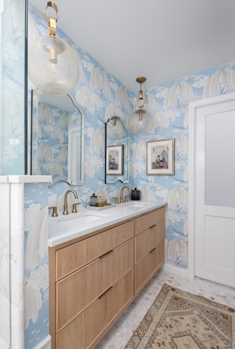 Laura Hildebrandt’s goodies are more artistic than technical or nature-based, though they can certainly be nature inspired! “I always select wallpaper for my clients’ bathrooms. Wallpaper adds interest and texture that you just can’t get with paint. It really is what brings in the wow to bathroom design,” she declares. While she primarily uses it for these private spaces, she’s also used it creatively in other areas of the home, including breakfast nooks, kitchen ceilings and as cabinet liners. Clients love it – especially the initially skeptical ones, she notes – and so does her bottom line, as wallpaper boosts the project’s margins.