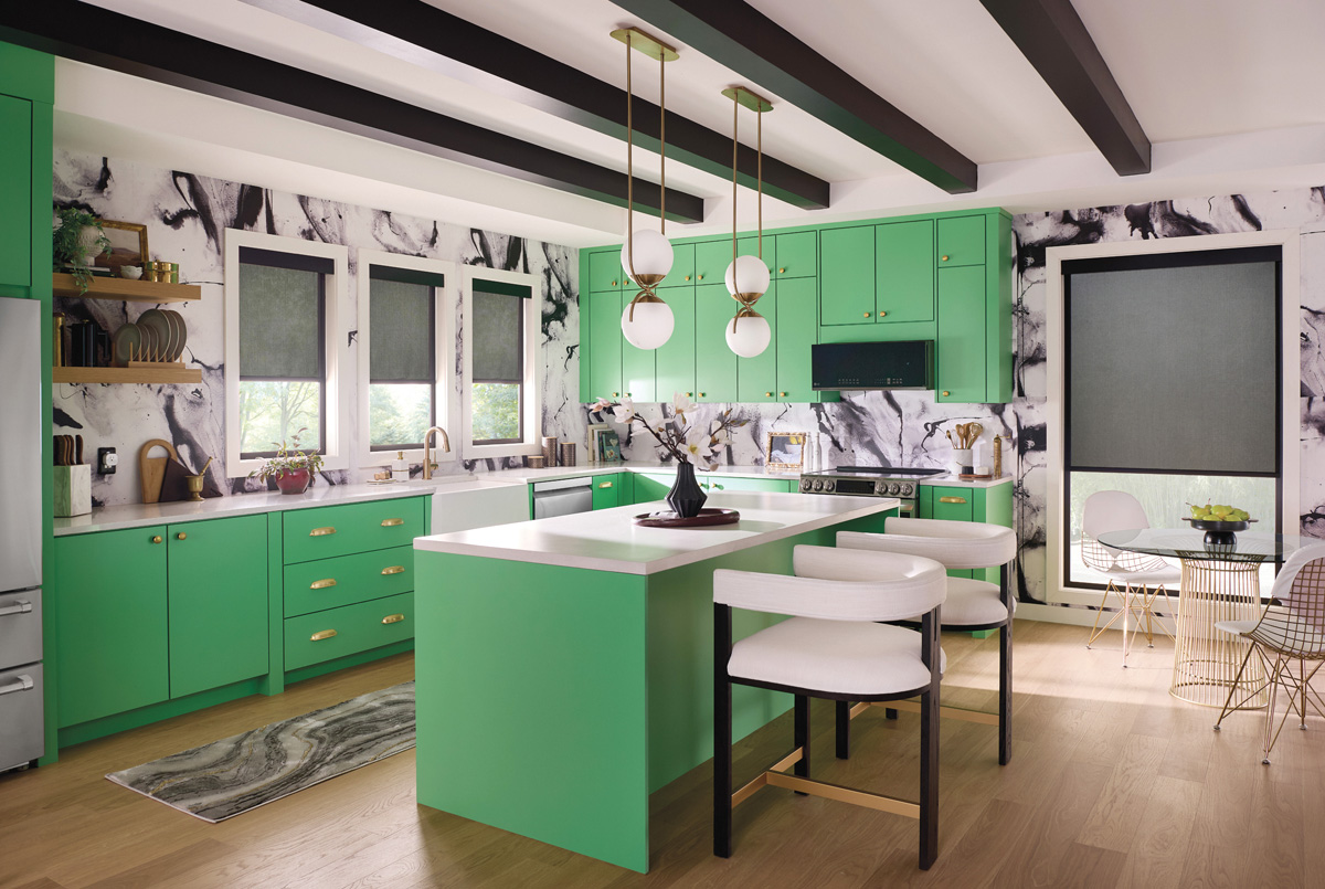 Smart lighting and shades are huge too, he adds, “especially since task lighting is so key for both areas. Motorized shades as well that allow for quick and easy privacy or to reduce glare or unwanted heat” are popular.